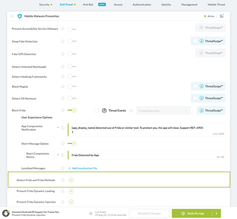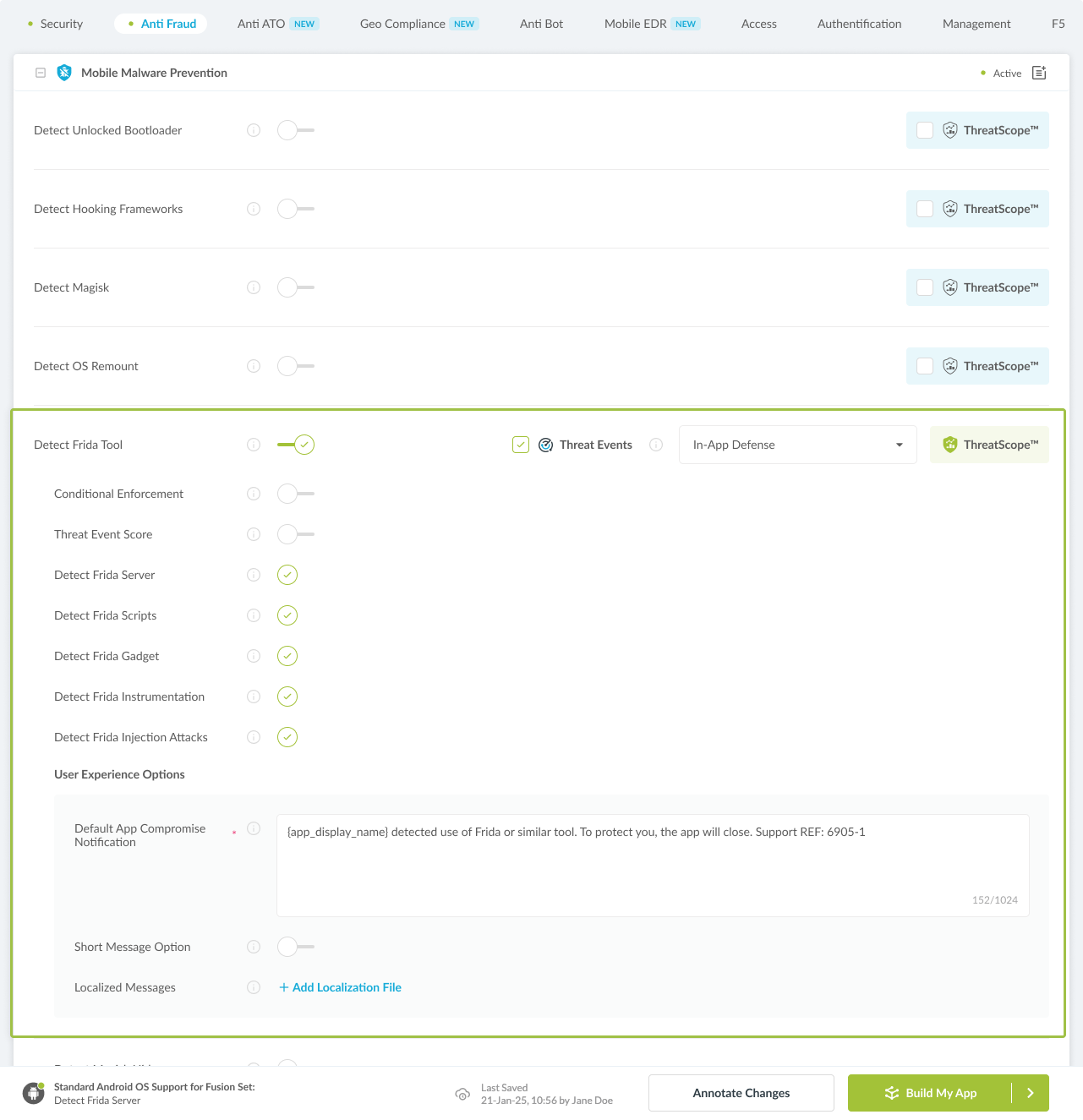 Figure 2: Fusion Set that displays the newly added Detect Frida Server protection