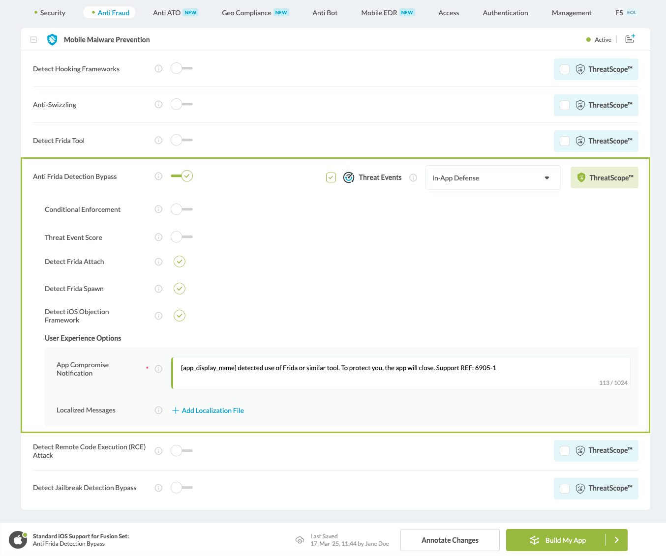 Figure 2: Fusion Set that displays the newly added Detect iOS Objection Framework protection