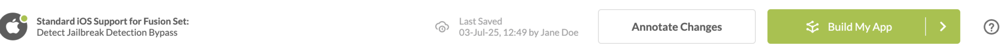 2. Follow the steps in Sections 2.2-2.2.2 of this article to add the Detect Jailbreak Detection Bypass feature to your Fusion Set via the Appdome Console.