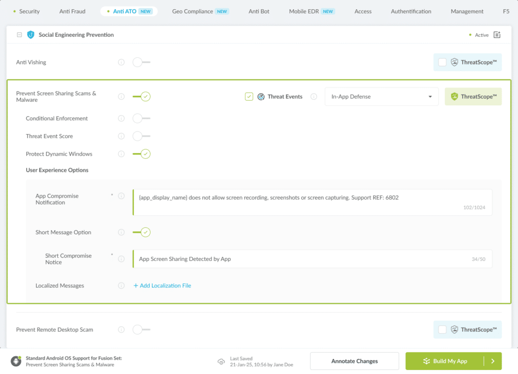 Learn how to customize the App Compromise Notification that will display to a mobile user if Appdome detects unauthorized screenshots, screen sharing, or screen mirroring.