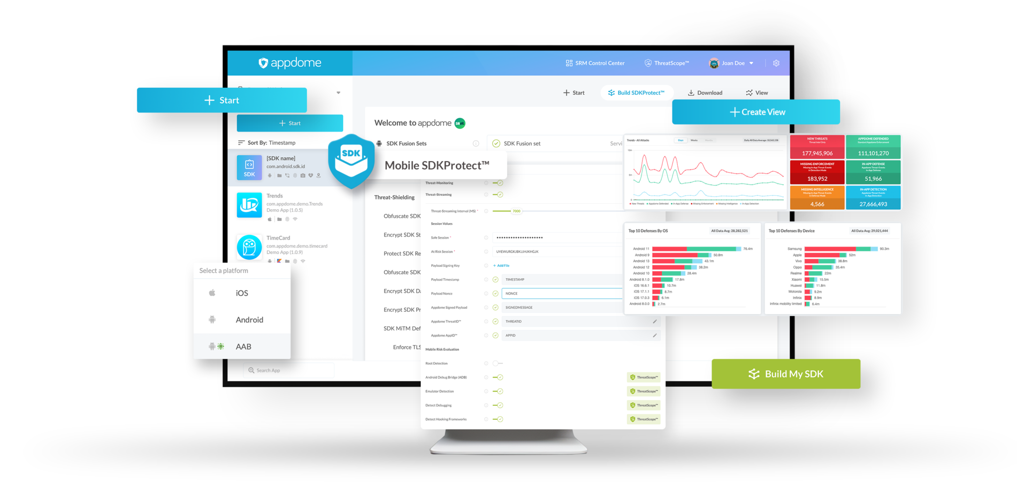 Appdome SDKProtect™ enables mobile SDK developers to quickly and easily create protected and threat-aware versions of their mobile SDKs, reducing the risk of reverse engineering, fraud and ensuring compliance with ease. SDKProtect offers three levels of defense for Android & iOS SDKs: Threat-Shielding to protect SDK code and data, Threat-Monitoring for visibility and analytics, and Threat-Streaming for detailed mobile attack and threat data from Android & iOS apps that contain the protected SDK. All implementations are 100% no-code and no-server required for ease of deployment.