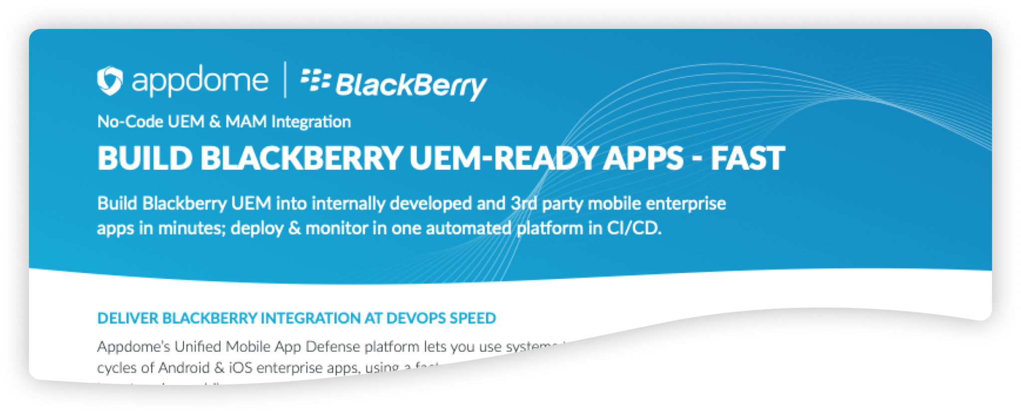 Appdome makes it fast and easy to secure and manage enterprise mobile apps with BlackBerry UEM. Add BlackBerry UEM to any mobile app, including internally built or 3rd party enterprise apps without coding, SDKs or app wrappers.