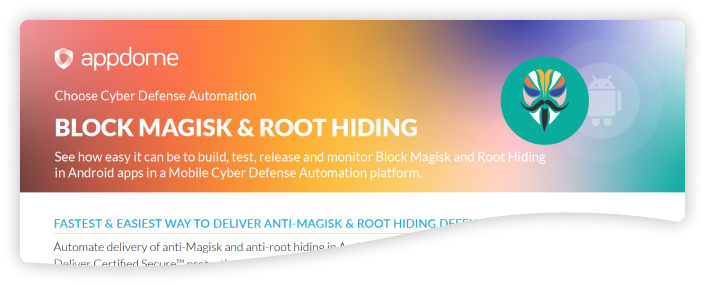 Our Android Malware Detection knowledge base has step-by-step instructions to deploy anti-malware, anti-spyware and other defenses in Android apps with ease. Once you configure Appdome's Android anti-malware features in your CI/CD pipeline, it'll be easy to create Certified Secure™ mobile apps, monitor attacks and defenses with ThreatScope™, and use Threat-Events™ to create beautiful user experiences when attacks happen.