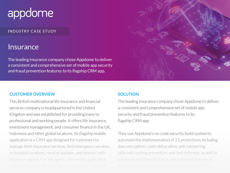 Access full range of Certified Secure™ insurance mobile app security features no code, no SDKs required.