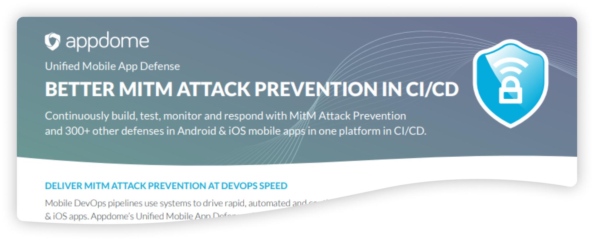 Request a Live Demo and get started with your MitM Attack Prevention project today. Time to market for your mobile app and the mobile app security features you need are equally important. You need to deliver both fast, continuously in your DevOps pipeline. We'll show you how to use Appdome to choose, build, verify and monitor 300+ mobile app defenses in Android & iOS apps at the speed of DevOps. No manual work, No code, No SDKs and no servers needed.